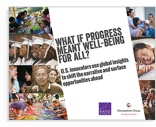 In the U.S. and globally, groups are starting to experiment with new narratives, but the movement is not networked, leading to competing narratives and incremental rather than transformative change. Most of these formal narrative efforts do not adequately address power and equity, they are too centered on measurements, and they are often based exclusively on economic analysis. And while some grassroots organizations are advancing well-being narratives centered in racial and gender equity, there has not been funding or support to connect these efforts or test which narratives most effectively shift mindsets and actions. We believe that as these voices are amplified, we will begin to see the true impact of a new narrative about progress centered on well-being.